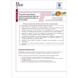 Cette infographie présente des résultats du projet de recherche TRANSPHERES (Appel à projet de recherche Transitions Ecologiques, Economiques et Sociales - TEES). L'équipe de sociologues et psychologues sociaux cherchent à comprendre dans quelles conditions les comportements pro-environnementaux (dans le champ de l'énergie, les déchets, la mobilité) réalisés dans la sphère privée sont transférés sur le lieu de travail et vice-versa. Ils cherchent également à analyser leur potentielle utilité au service de la transition écologique, mais aussi de l'engagement des employés dans les organisations : en quoi ces transferts peuvent être des leviers d'une modification profonde et massive des pratiques favorables à l'environnement. L'analyse permet de mieux comprendre ce phénomène de transfert et offre des clefs aux directions d'entreprises et grandes organisations pour encourager ces pratiques.